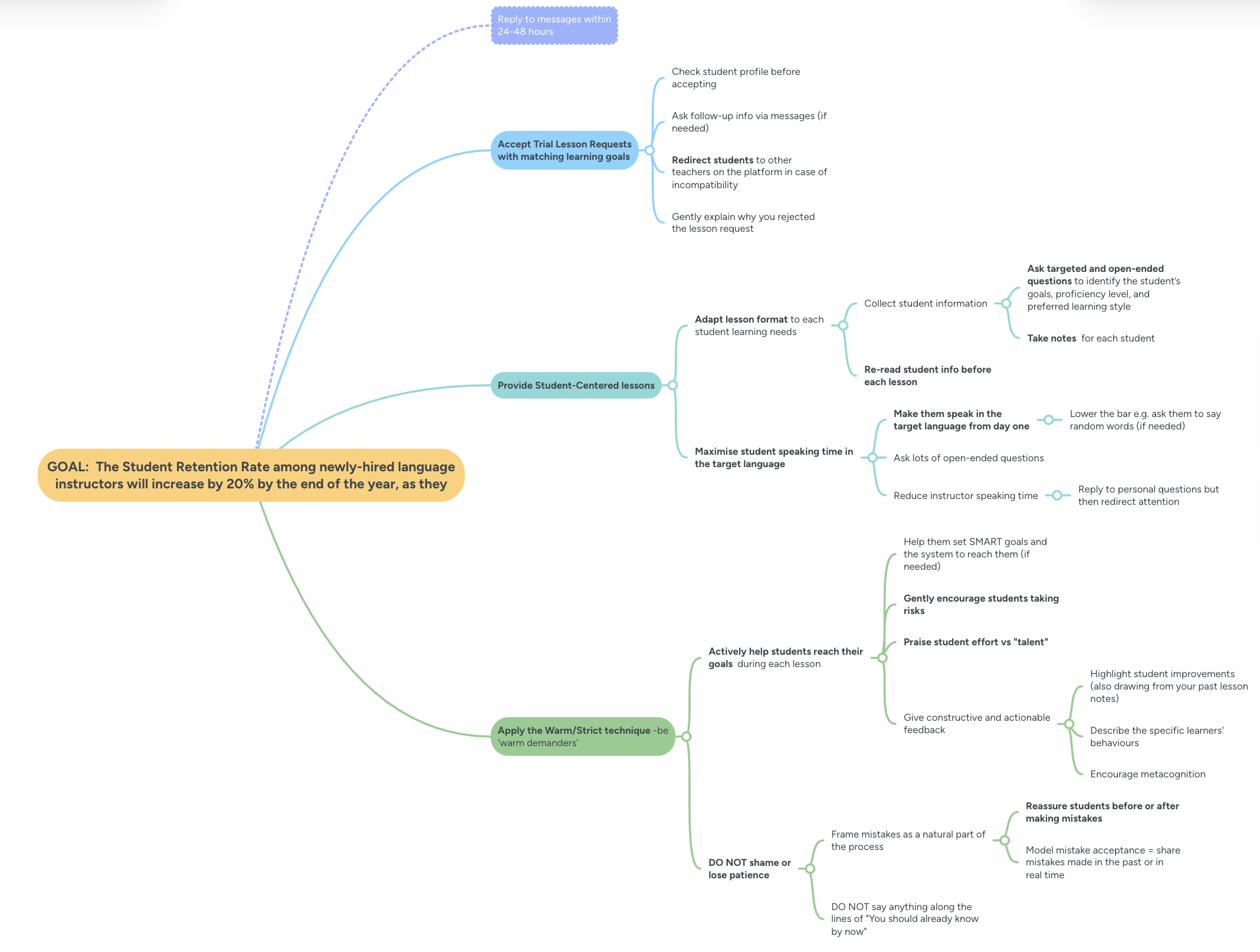 Through comprehensive research, I compiled the perspectives of language learners and educators to select 4 key actions and specific subactions that language instructors need to integrate to enhance learner retention.