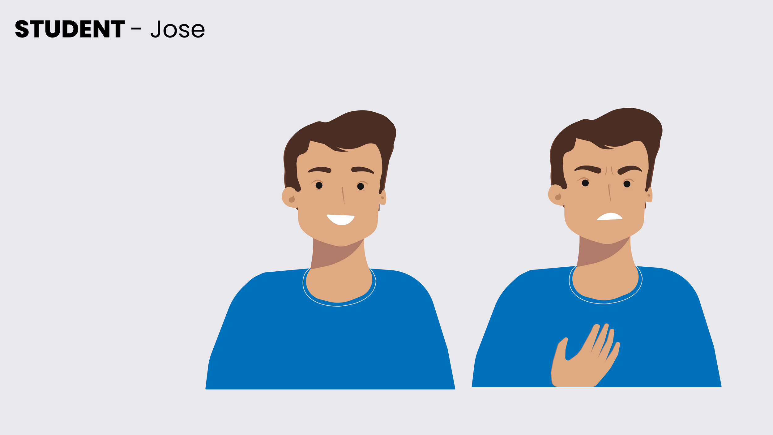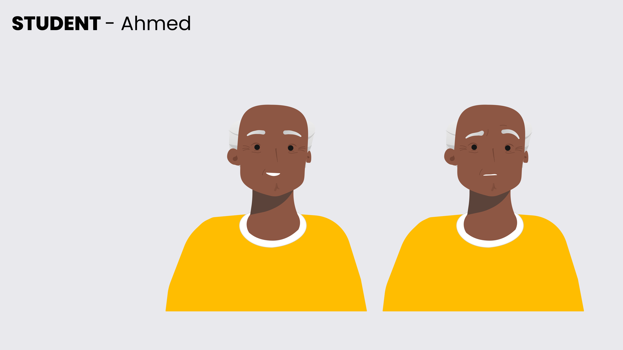 I designed a custom character set from scratch, complete with a range of emotional expressions to show—rather than tell—the consequences. The characters include the previously mentioned mentor and three students.