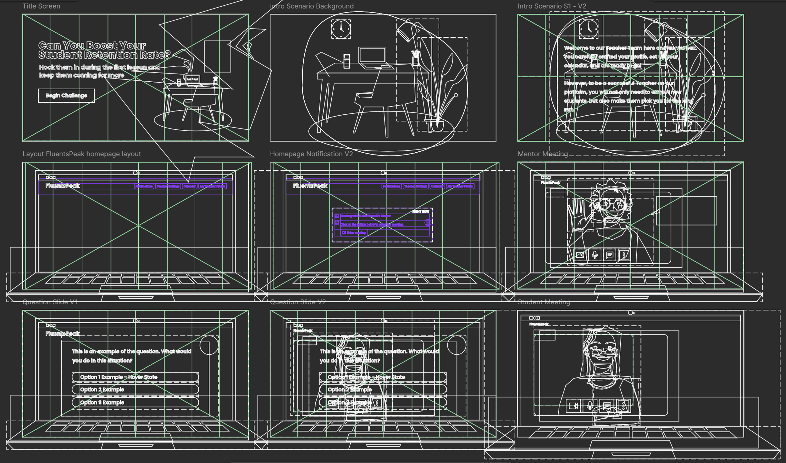 To give the experience a realistic feel, I designed both the backgrounds and the learner interactions to resemble the FluentSpeak e-learning platform, aiming to maximise the course’s usefulness for onboarding instructors.